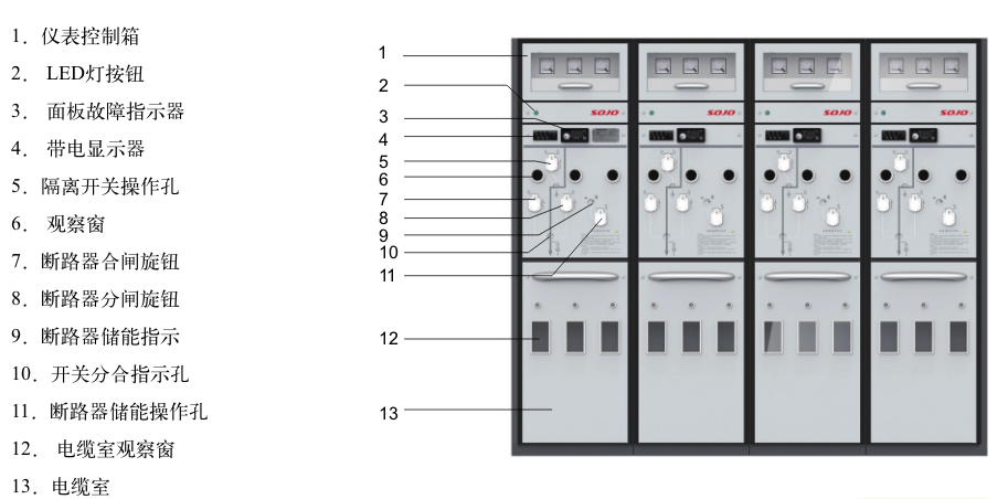 强风沙地区应用:固体开关柜本体清静防护品级 为IP67,,控制回路室接纳特殊处置惩罚确保强风沙地区恒久运行。。