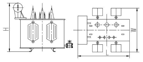 | 型号 | 额定容量 | 典范电压组合(kV) | 联络组标号 | 阻抗电压(%) | 总重(t) | 参考尺寸(mm) L*W*H | 空载消耗 | 负载消耗 |